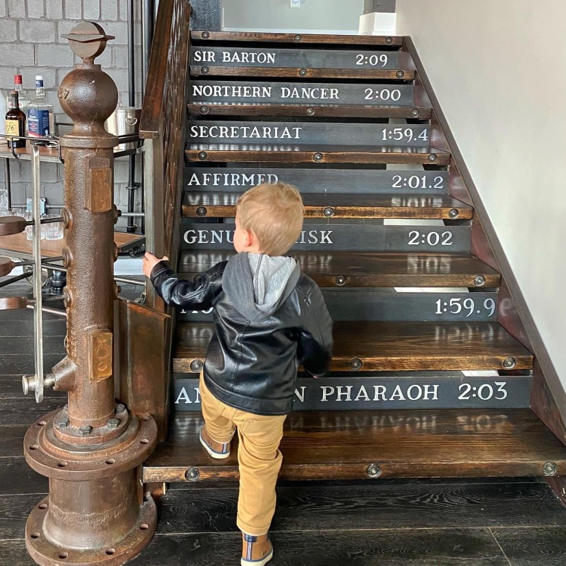 I’d done a lot of online research on which distilleries were welcoming of children since we had a two-year-old in tow. Woodford Reserve was not one of them, based on the few articles I’d read, but it consistently ranks among the best to visit, located out among rolling thoroughbred farms. I had opted not to book a formal distillery tour (note: reservations are required and fill up fast and typically open to reservations around three months in advance), and instead, see if we couldn’t arrive *right* as their open-to-the-public bar opened, so that at minimum, we could take a quick look around and have Trevor properly kick off his birthday weekend with a high-quality bourbon tasting. Somehow, it worked. We arrived right around 11 a.m., when the bar, located across the street from the distillery’s Main Entry building and gift shop, opened its doors. We were the first ones in and Trevor promptly ordered a $75 tasting of the line’s finest bourbons. I took advantage of a free mocktail… and within five minutes, Mack had “cheers’d” my cup too enthusiastically and sticky mocktail mule went everywhere. We were totally those people. And the staff wasn’t particularly forgiving. Thankfully, we were still the only ones there and we don’t take things personally :) I’m calling it a success and don’t regret it for a second. The drive out to Woodford Reserve alone is beautiful and worthwhile.