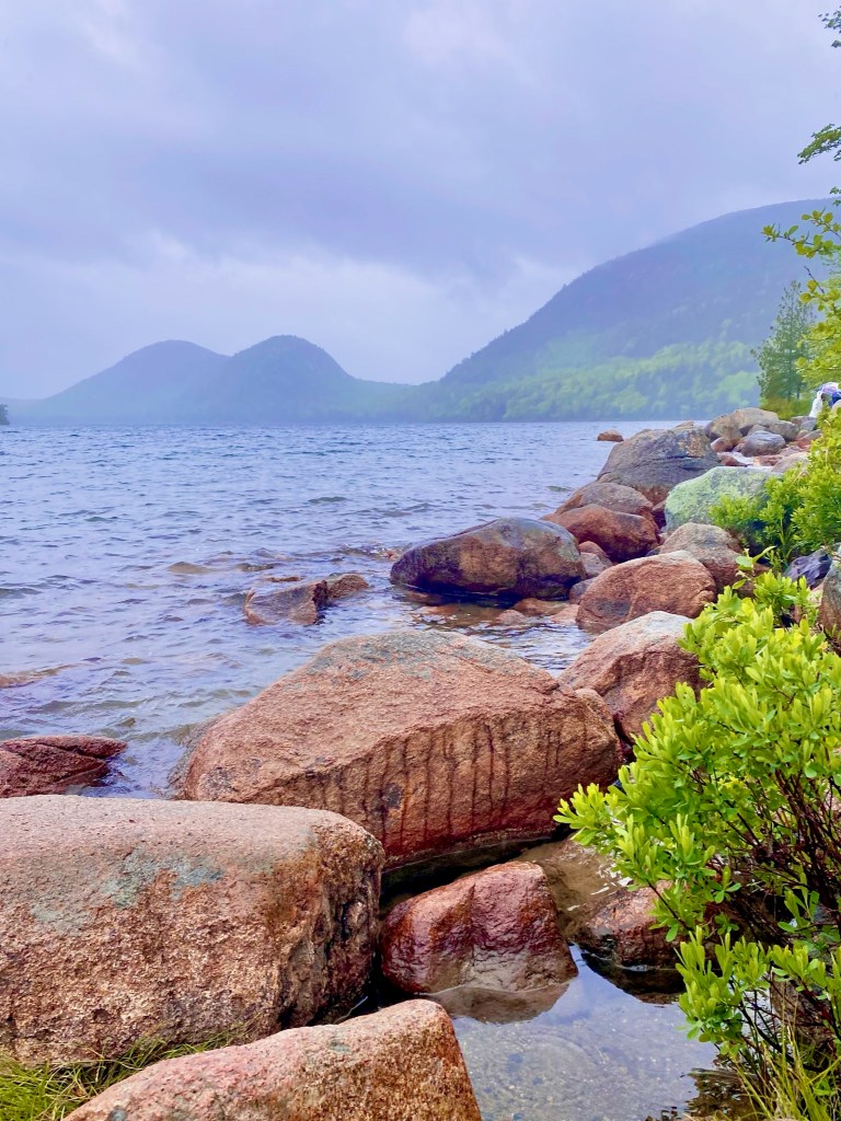 – Drove through the quaint town of Bar Harbor, which was solidly packed with pedestrians and vehicles on a holiday weekend. Then, when we finally snagged a parking space in Acadia, we hiked the Great Head Trail in a misty rain, and threw down a blanket to lounge at Sand Beach. (Stopped by Jordan Pond House, but didn’t wait long enough to try the popovers, sigh) and walked the scenic pond pathway while Mack napped in his stroller; it was worthwhile and gorgeous, even in the drizzle.