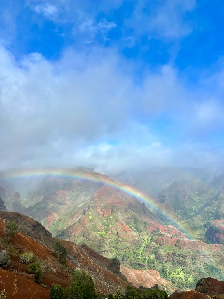 But best yet, when you have an afternoon open to hit the road, is a drive up to the Waimea Canyon lookout, the prettiest dang driveable views on Kauai. Head to the main canyon lookout point where you’ll pay per car and per person to park and take a peek. Then, drive to the end of the state park road, where you can peer through the canyon toward the ocean. If it’s rainy, just give it time. Epic rainbows await.