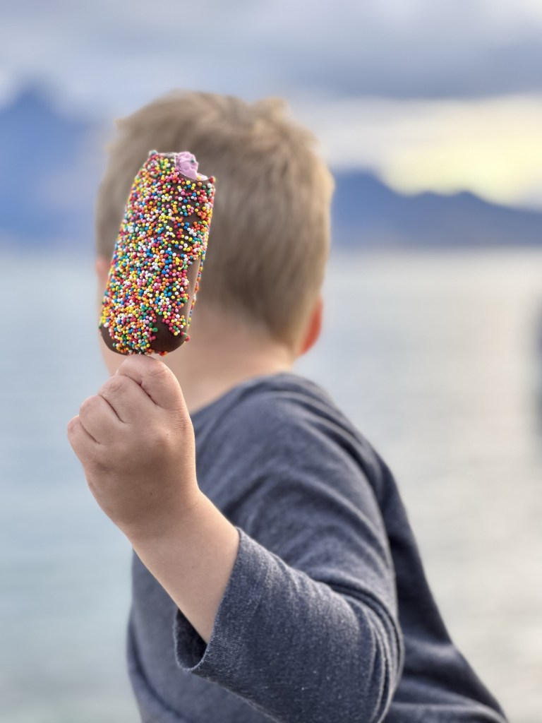 Not only did Trevor experience a rainbow at sunrise while boating alongside a pod of dolphins (cue the symphony), the entire family bore witness to a trio of orcas – or killer whales – swimming insanely close to the shore on our way home from the playground one evening. THAT is the magic of Kaikoura.